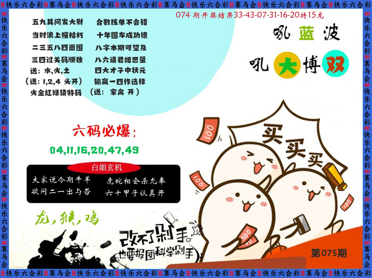074期 绝杀三肖 【马猴猪】 开 龙15 准